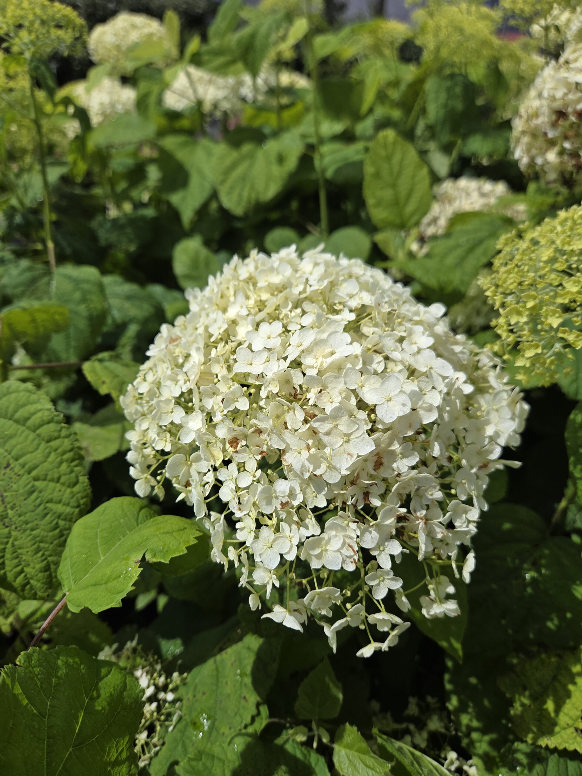 Hydrangea ‘Annabelle’ is a stunning deciduous shrub known for its large, snowball-like clusters of white flowers which bloom from early summer to autumn. Perfect for borders, foundations, or as a standout specimen. This hardy, low-maintenance plant thrives in partial shade and moist, well-drained soil.